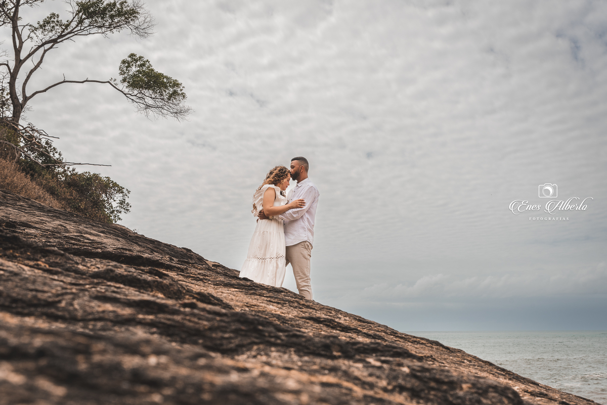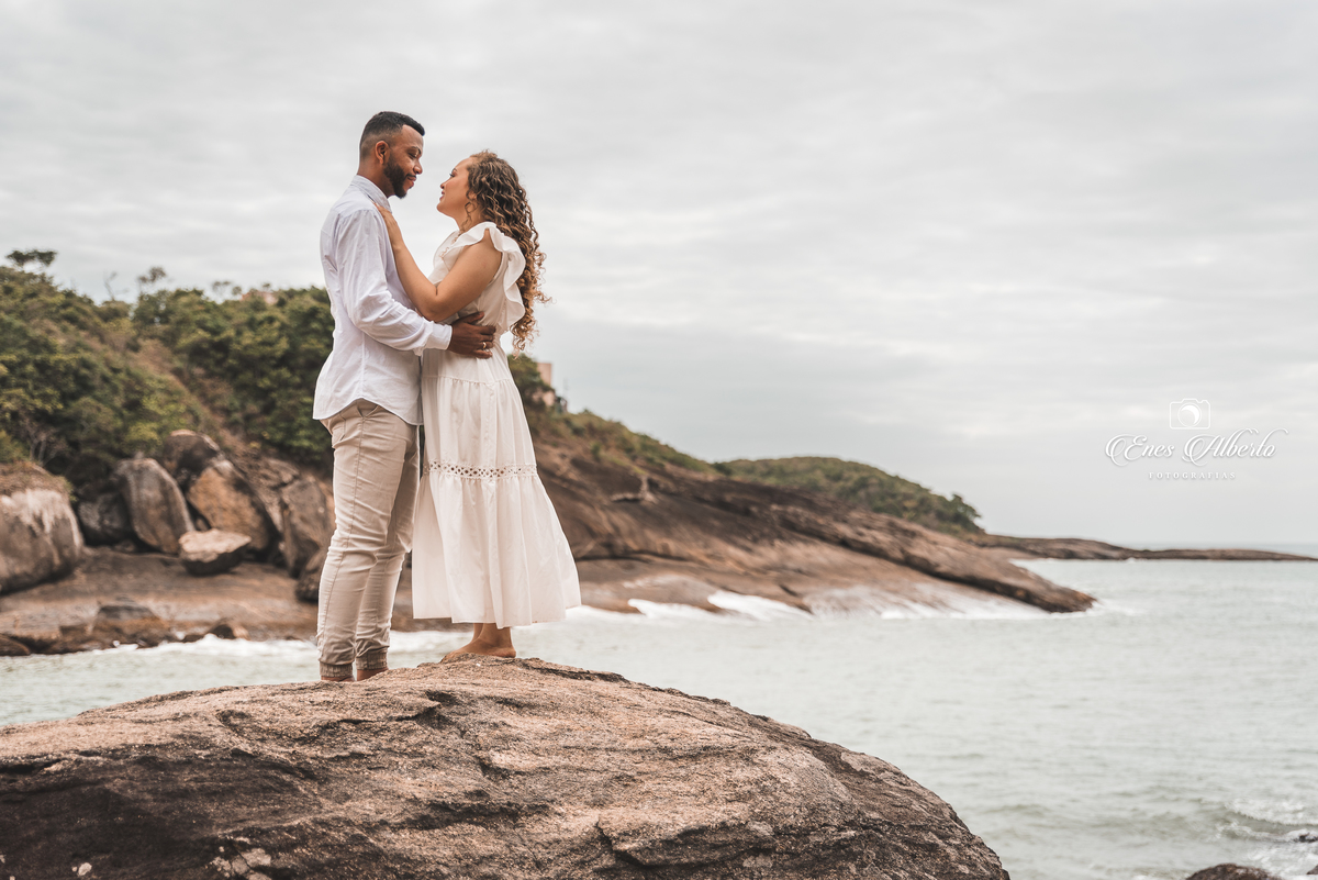 Ensaio fotográfico Pré Wedding realizado na praia dos Padres na cidade de Guarapari ES.